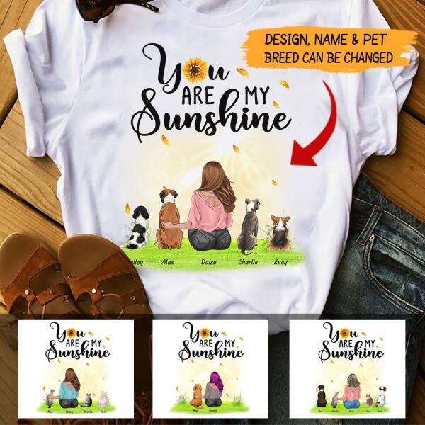 You Are My Sunshine Sunrise Hugging girl, dog, cat personalized T-Shirt TS-HR121B