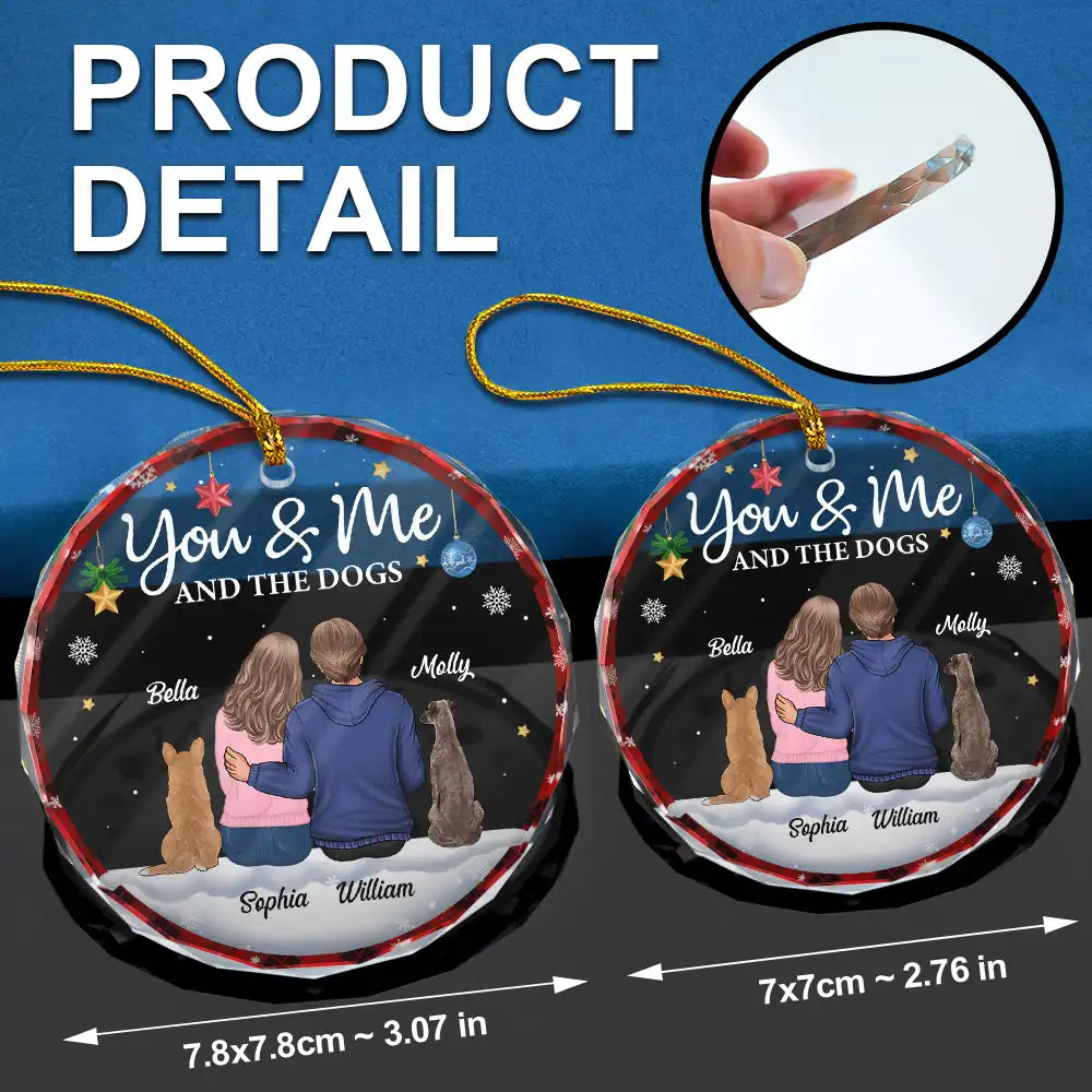 You & Me & The Dog Christmas Couple - Personalized Circle Glass Ornament